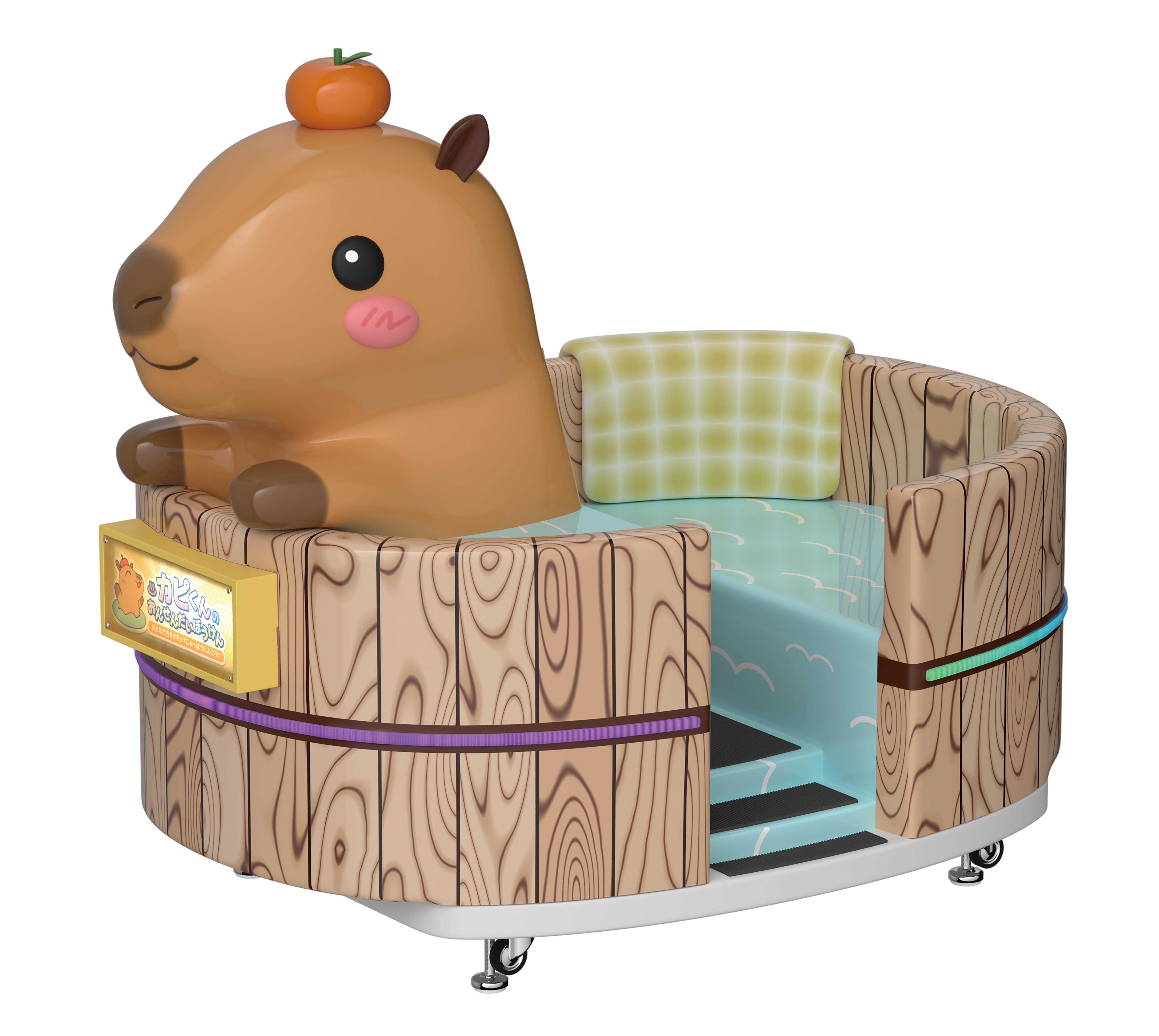 カピバラ(カピ)くんが目を惹く定置式ライド機。